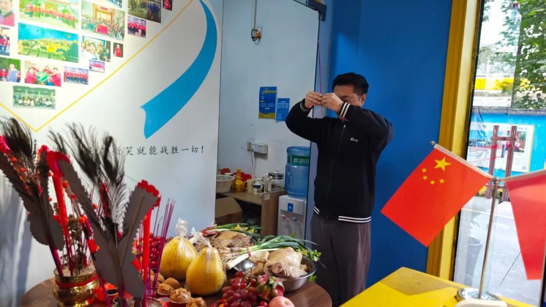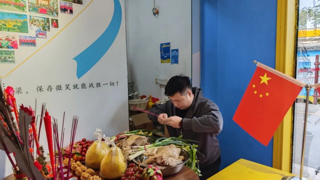 我們的老大(榮裕智能創(chuàng)辦人鄭景文先生)向來注重對傳統(tǒng)文化的傳承,于是在尾牙這一天,公司早早就準備香火和貢品祭祀土地公,祈愿來年風調雨順、生意紅紅火火,也希望家人和員工們都能平安健康。